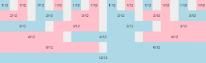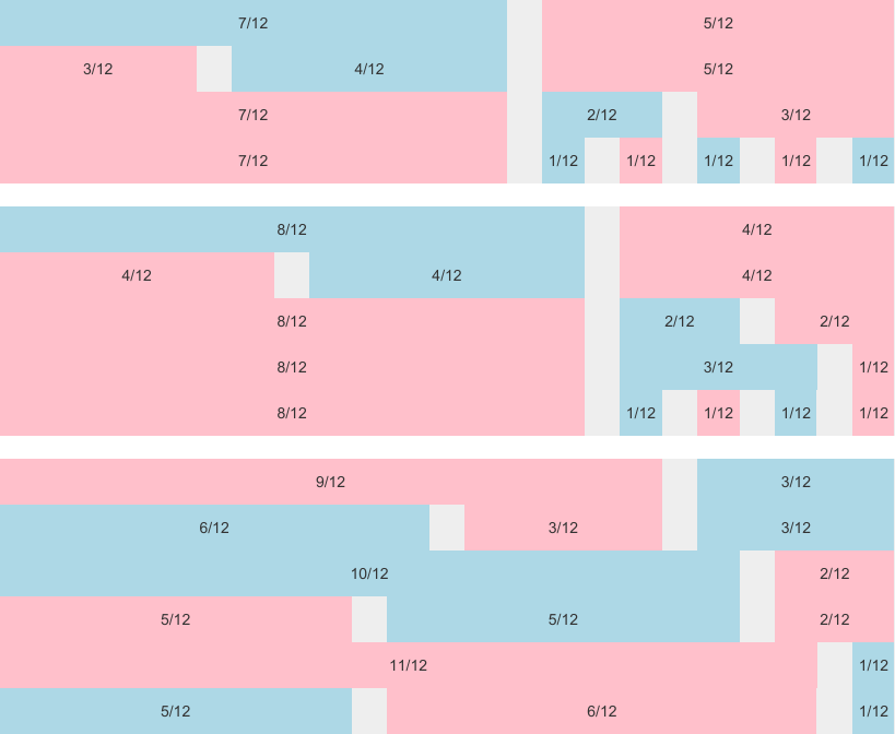 a grid with two rows, row one using a 4/4/4 division, row two a 3/3/3/3 division.