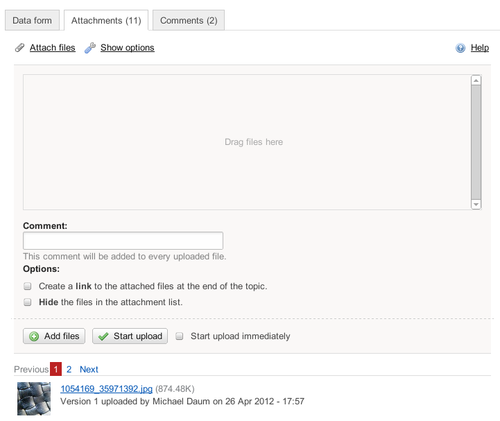 • $comment: the file comment from the upload dialog